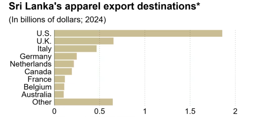 2024年斯里兰卡服装出口目的地/图源:日经亚洲